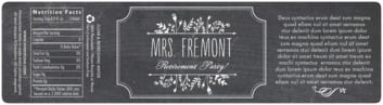 Custom Water Bottle Label - Chalkboard | Anderson's Description Even your water bottles can match your Prom or Homecoming theme with our unique Custom Water Bottle Labels with chalkboard design. The labels are perfect for coordinating with a western or shabby chic prom theme! The 8" x 1 1/2" label features the quaint chalkboard-style design and your choice of imprint in white ink.